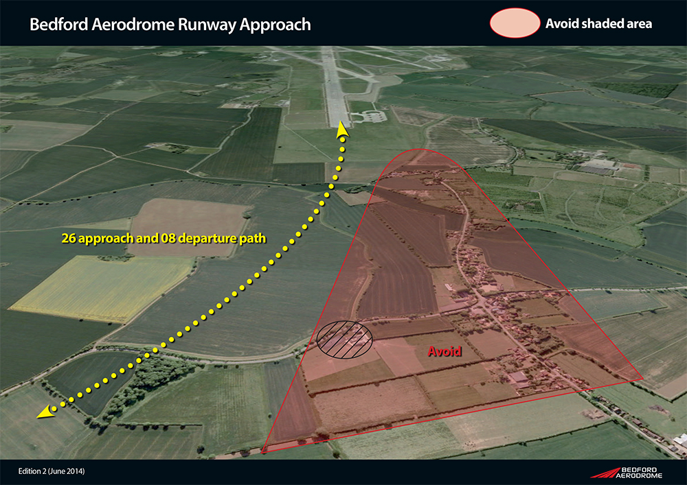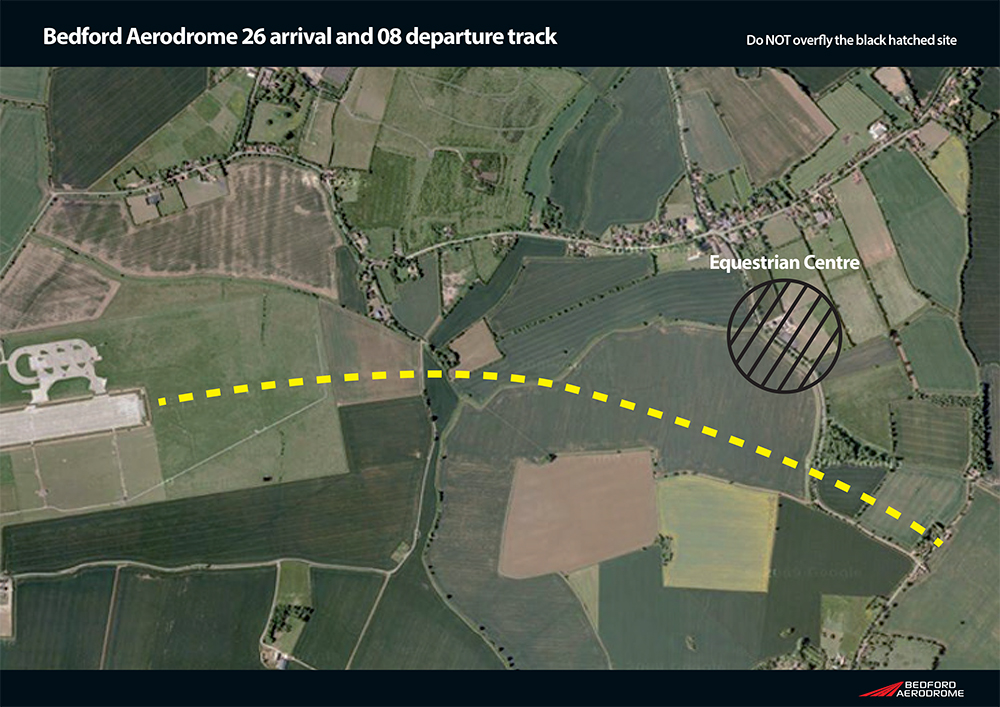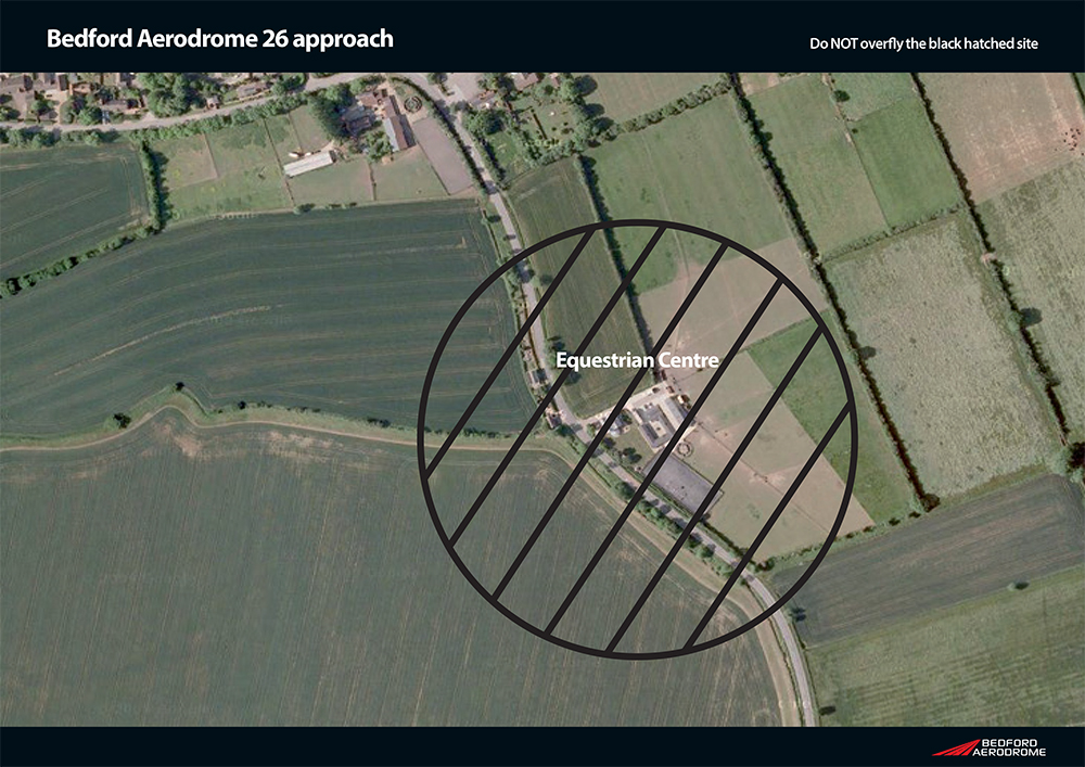 If it is necessary to arrive on runway 26 make a southerly offset approach to avoid Keysoe and the Equestrian Centre