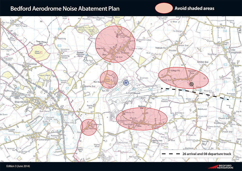 Avoid overflying villages of Bletsoe, Thurleigh, Hatch End, Keysoe Row and Riseley